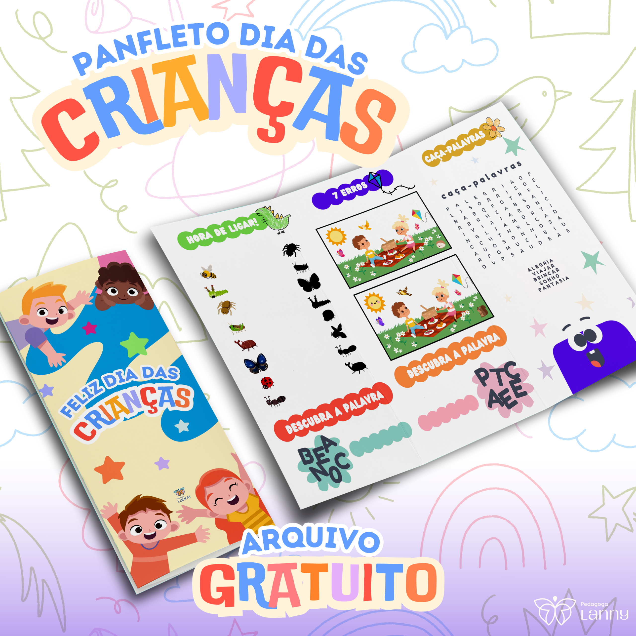 Preparei com muito carinho este panfleto gratuito, cheio de atividades lúdicas e coloridas para tornar o dia dos pequenos ainda mais divertido! 🌟✏️